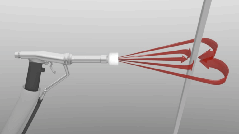 Efficiency | High transfer efficiency (up to 95%) | Lower efficiency (40–70%) due to overspray |